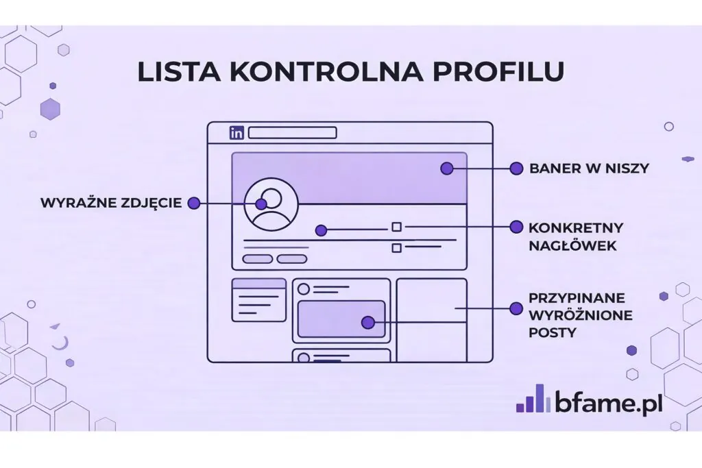 Istnieje także algorytmiczny powód, aby zrobić to dobrze. LinkedIn analizuje Twój nagłówek, sekcję „About” oraz historię postów, aby zrozumieć Twoje obszary ekspertyzy. Jeśli Twój profil mówi jedno, a Twoje treści coś innego, platforma wykrywa niespójność i ogranicza dystrybucję Twoich postów.
