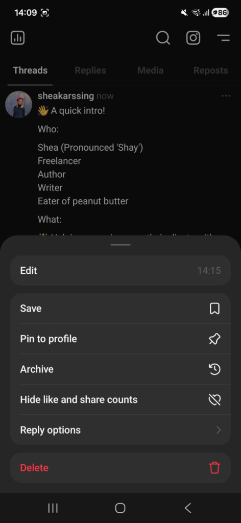 W przeciwieństwie do wielu innych platform, Threads umożliwia edycję posta po publikacji.